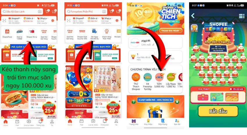 Bước 2: Tại trang chủ, chọn mục “Săn ngay 100.000 Xu”.