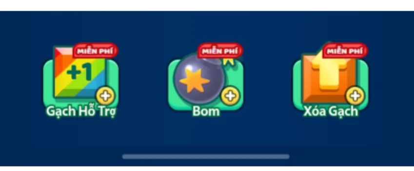 - +1 gạch hỗ trợ: Thêm 1 viên gạch phù hợp với khoảng trống trên bàn chơi để xoá bớt các hàng gạch khi các bạn chuẩn bị vào thế bí