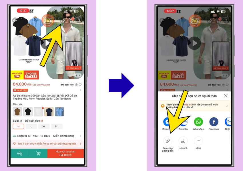 Nhấn biểu tượng chia sẻ sau đó chọn copy link sản phẩm đó