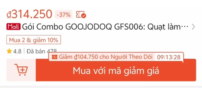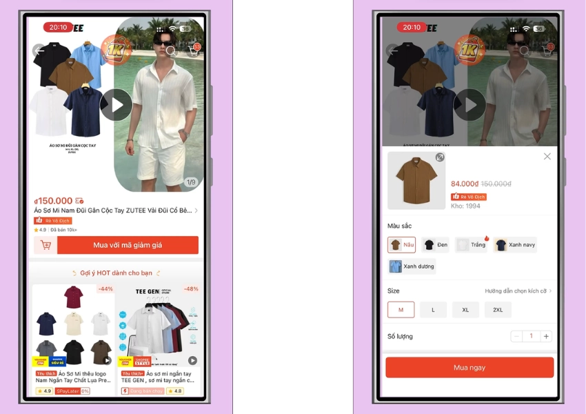 - Bấm Mua với mã giảm giá chọn phân loại sản phẩm (nếu có) sau đó nhấn Mua ngay.