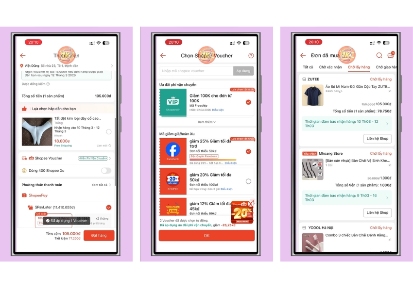 - Tại giao diện thanh toán chọn Shopee Voucher ->> tích chọn Voucher Facebook 25% nhấn Ok rồi nhấn Đặt hàng như bình thường nhé.